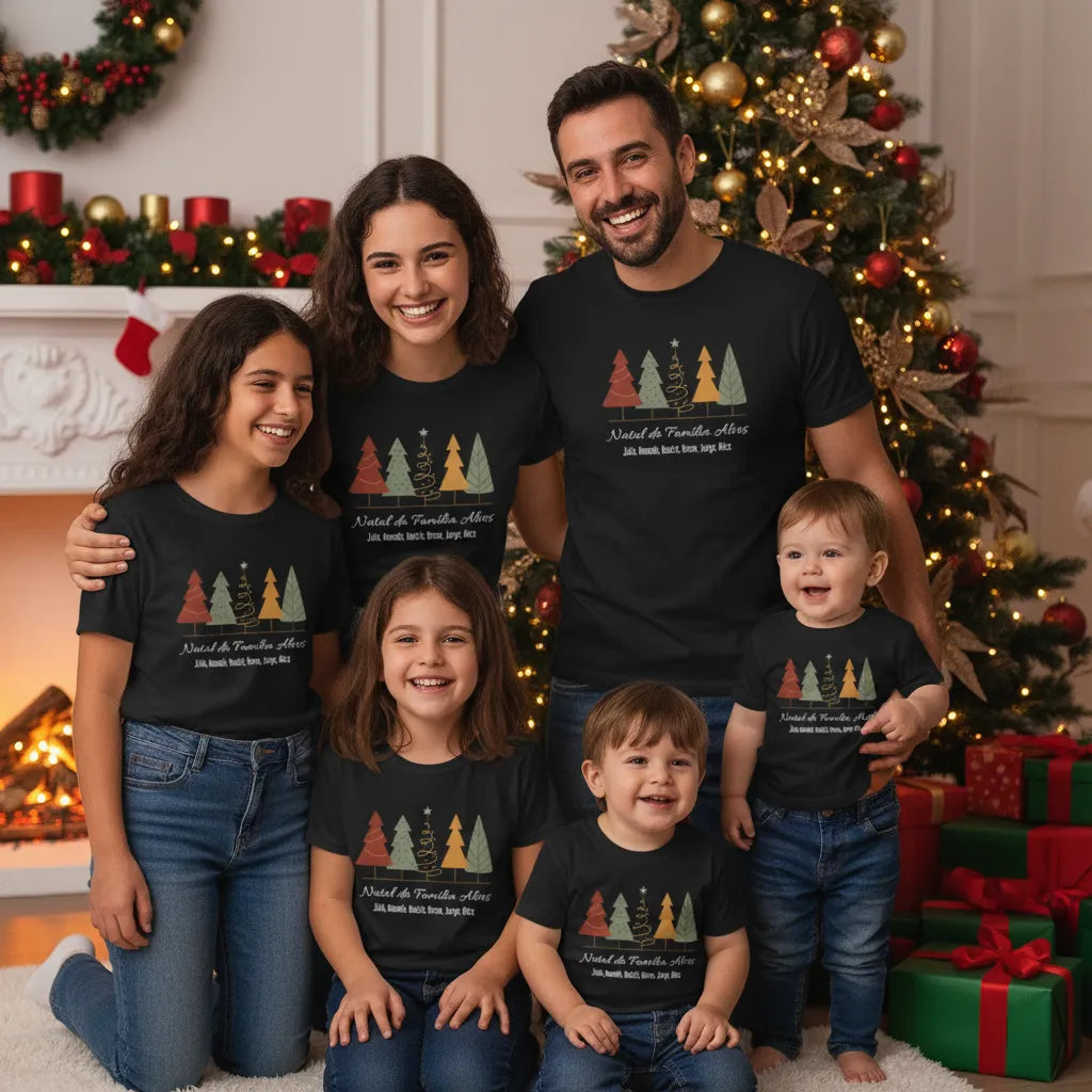 A estampa com elementos natalinos representa união, tradição e pertencimento — enquanto os nomes personalizados tornam cada peça única, feita exclusivamente para sua família.