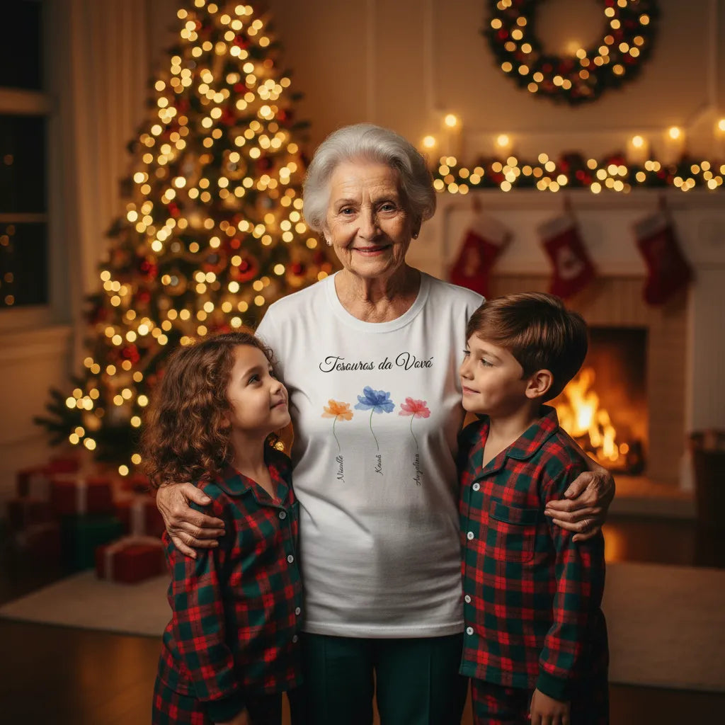 Essa camiseta personalizada foi criada para eternizar os verdadeiros tesouros da vovó — aqueles que ela guarda no coração.